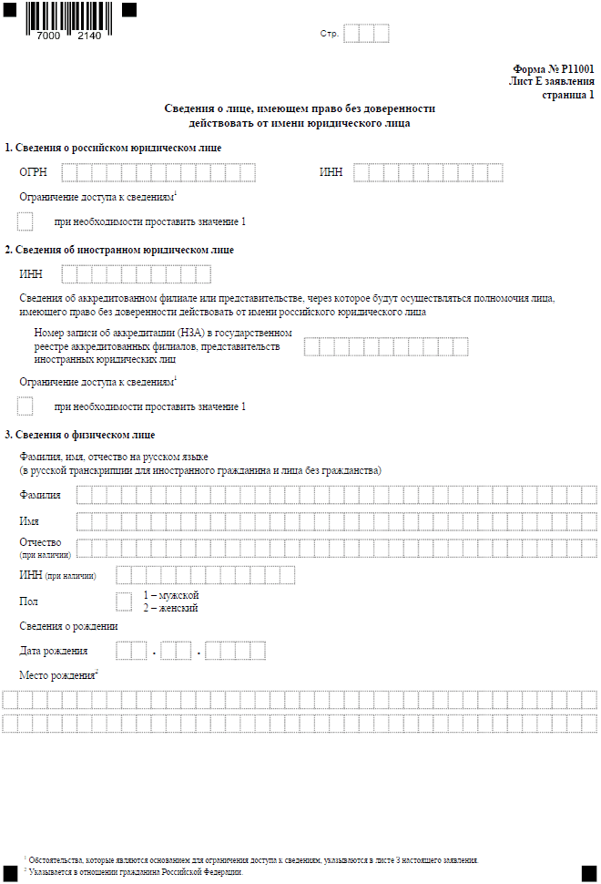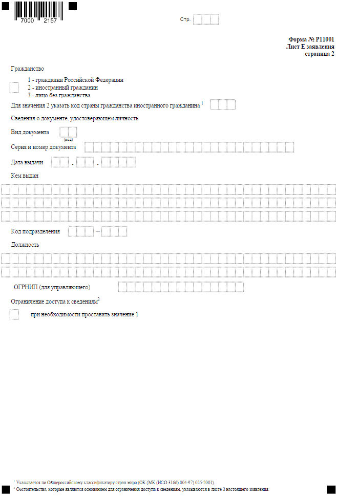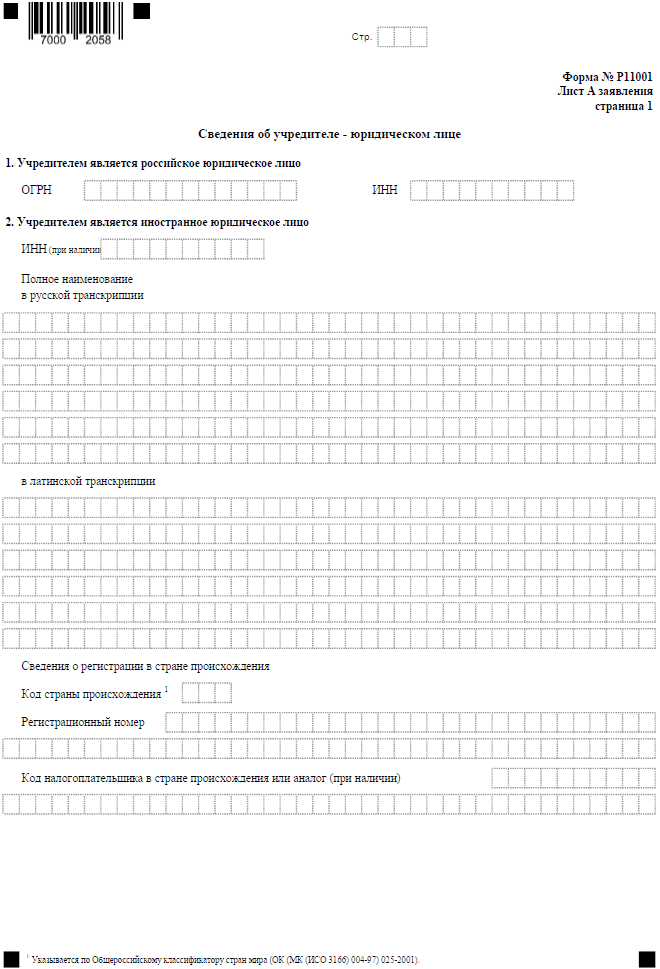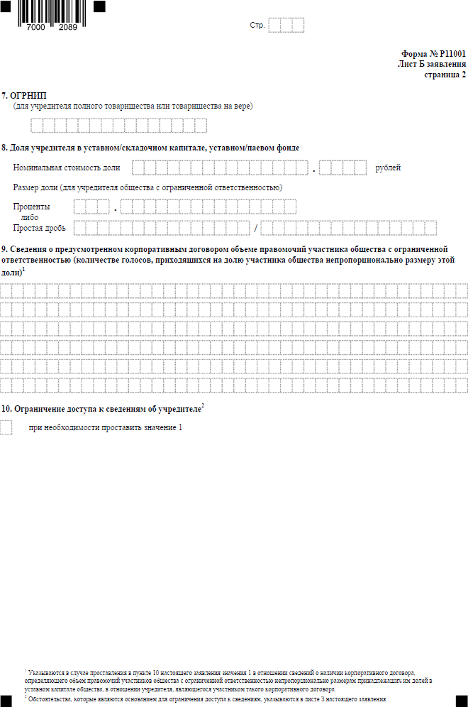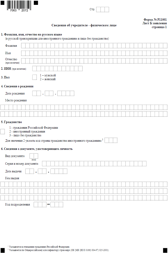 - форма Р11001 образец –учредитель – физическое лицо