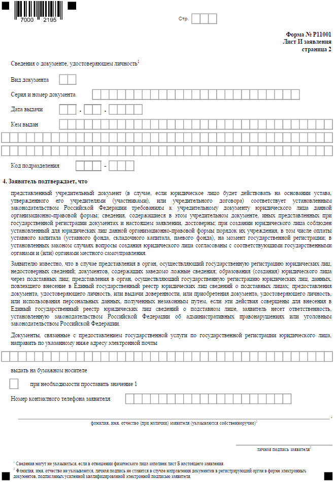 Заявление Р11001 подписывает каждый учредитель на своем листе. Например, если в ООО будет два партнёра, то заполняется два листа И. Единственный учредитель заполняет один лист И.