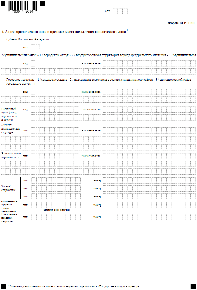 Обратите внимание: если местом нахождения ООО будут города федерального значения Москва, Санкт-Петербург, Севастополь, а также город Байконур, то в пункте 3 указывается только код субъекта РФ. Остальные элементы адреса не заполняются, это требование из приложения № 13 к приказу ФНС № ЕД-7-14/617@. А вот при заполнении пункта 4 заполняются все поля, в том числе, для городов федерального значения и Байконура.